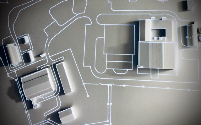 3D-printed model of the listening station. A map found during one of my site visits is projected onto the surface of the model. Image: John Shiga.